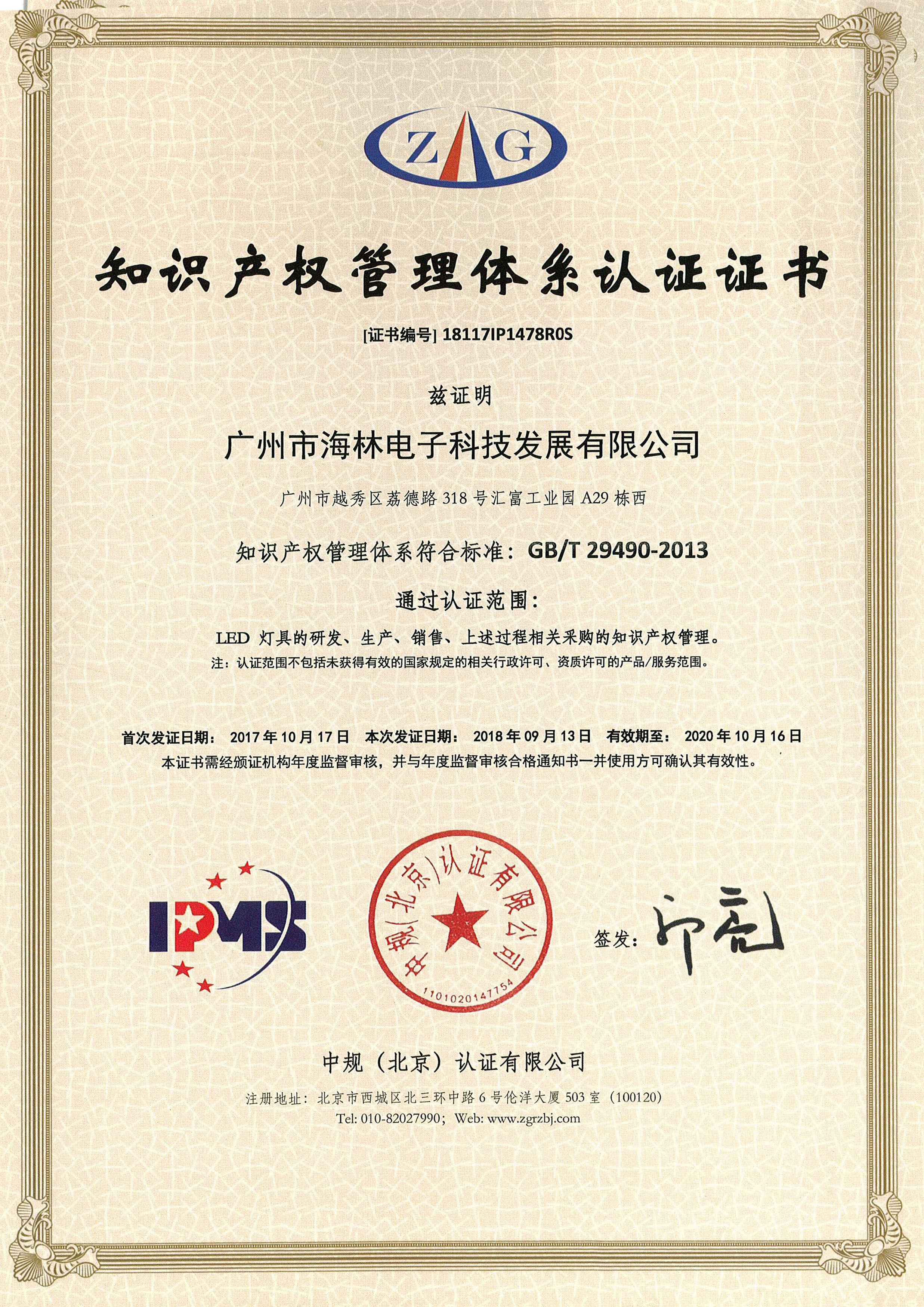 知識(shí)產(chǎn)權(quán)管理體系認(rèn)證證書