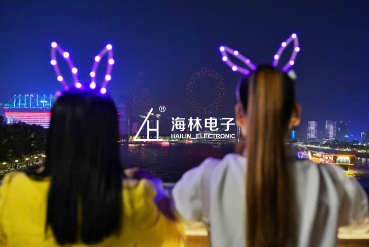 開幕式上無人機(jī)空中表演,并在夜幕中組成數(shù)字“40”等圖案。寓意著主題:改革開放40年,光語花城新時(shí)代。