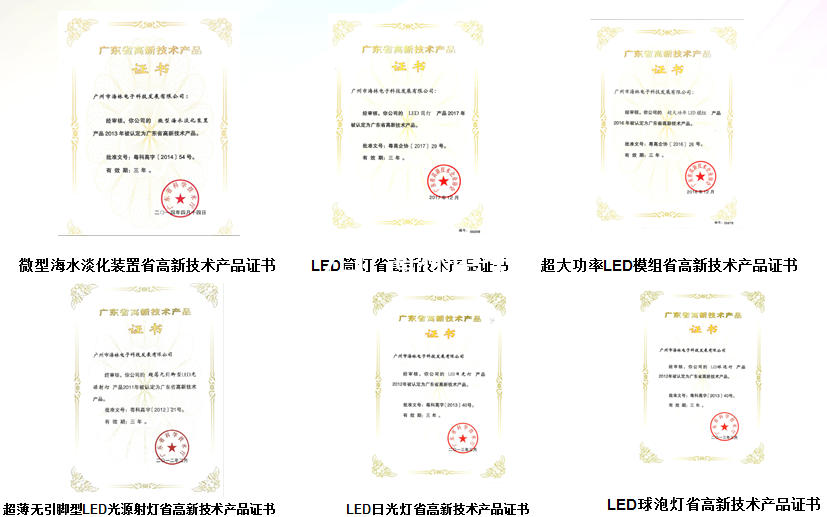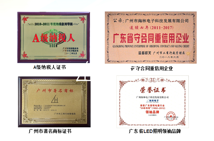 LED相關(guān)榮譽(yù)資質(zhì)
