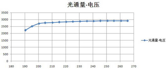 由圖中可見(jiàn),采用這種自適應(yīng)調(diào)節(jié)以后,在不同的輸入電壓范圍內(nèi),其輸入功率,輸出光通量和整體光效都基本上保持不變。